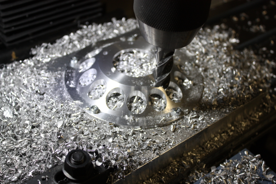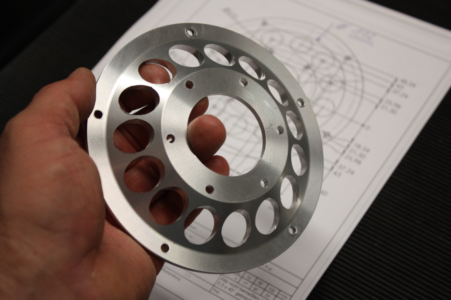 Der fertig gedrehte Flansch wurde auf der Fräsmaschine mit Ausfräsungen und Bohrungen weiterbearbeitet.