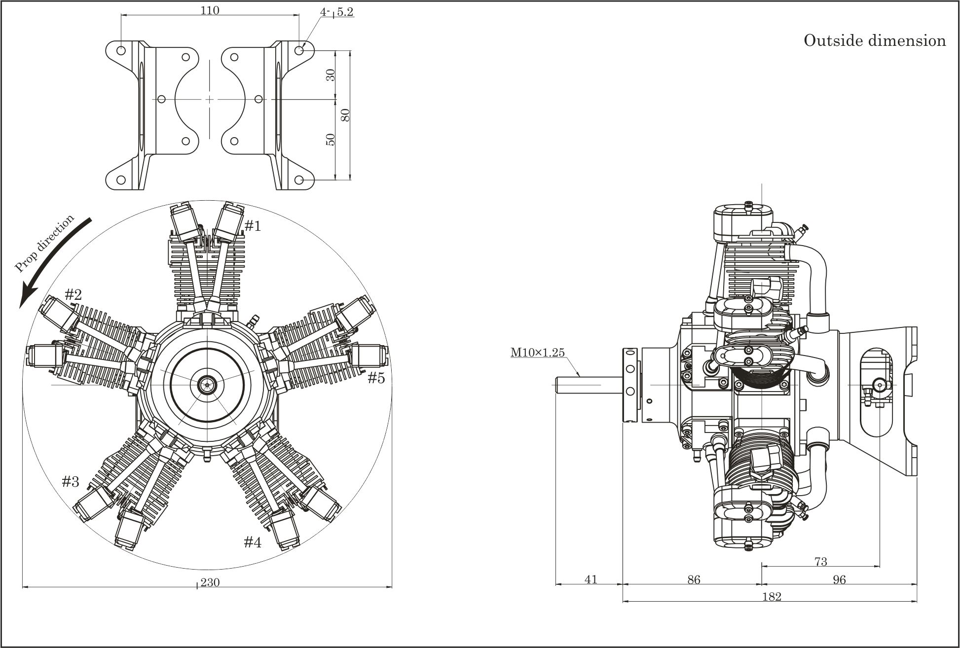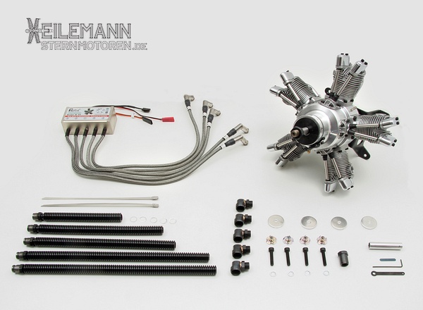 5-cylinder, 4-stroke radial engine (Petrol) incl. muffler and engine carrier