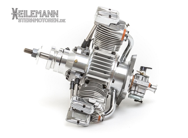 3-cylinder, 4-stroke radial engine (Petrol) incl. muffler and engine carrier