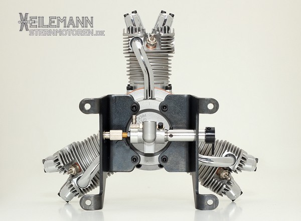 3-cylinder, 4-stroke radial engine (Methanol) incl. muffler and engine carrier