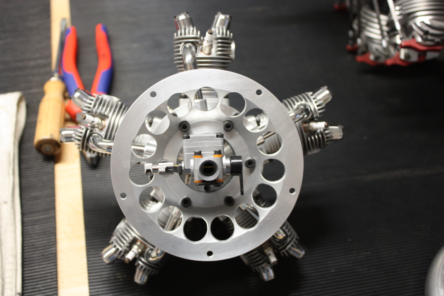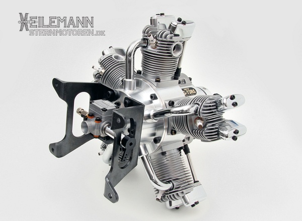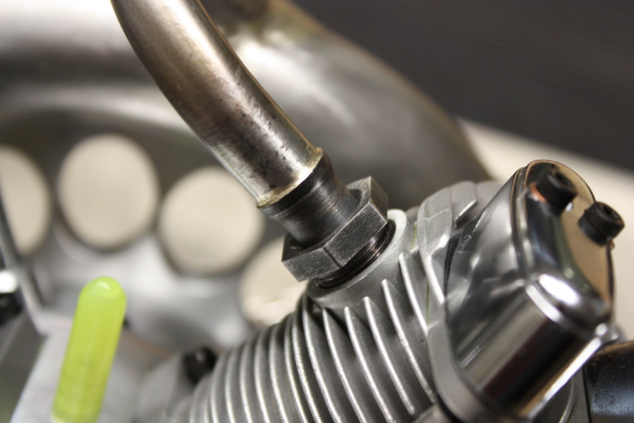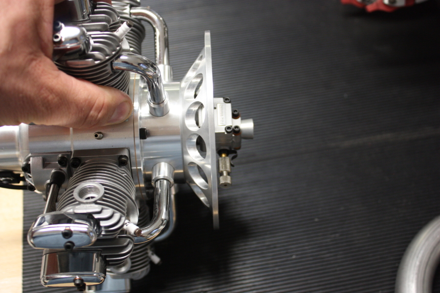 Für unser neues Projekt haben wir uns für einen Saito FG73 entschieden. Er ist perfekt verarbeitet, sieht gut aus und passt im Durchmesser und Gewicht zu unserem neuen Modell. Da unser Modell jedoch eine extrem kurze "Schnauze" hat, mussten wir den mitgelieferten Motorträger ersetzen. Wir fertigten dazu einen neuen Motorträger aus Aluminium an.