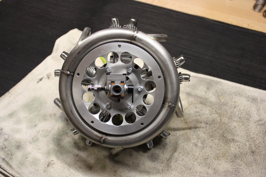 Zwischen Zylinder und Motorträger, unter Berücksichtigung der Ansaugrohre, muss jetzt noch der Ringschalldämpfer montiert werden. Leider hatte unser Keleo Ringschalldämpfer, nach dem extrem gekürzten Motorträger, nun keinen Platz mehr.