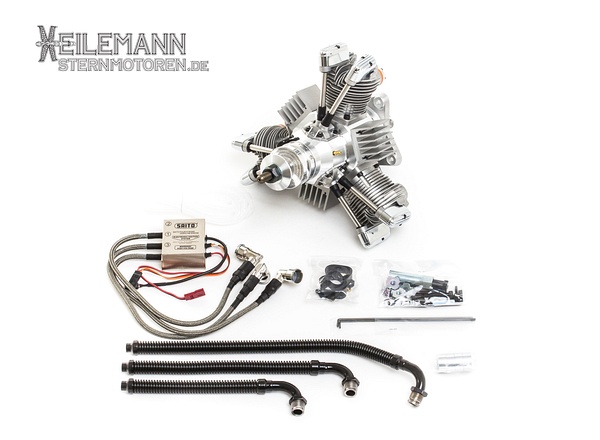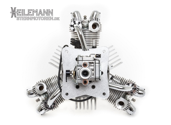 3-cylinder, 4-stroke radial engine (Petrol) incl. muffler and engine carrier