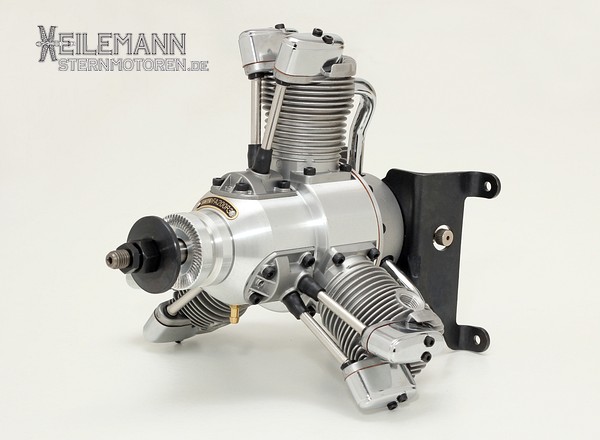 3-cylinder, 4-stroke radial engine (Methanol) incl. muffler and engine carrier